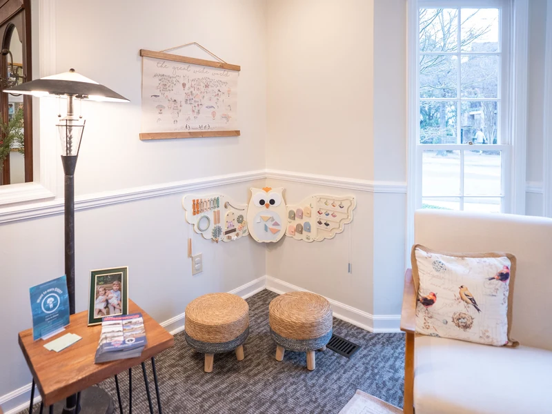 Nestled in the heart of Homewood, our office is located on Oxmoor Road just a block from City Hall. We often hear that our office “feels like home,” and we intend to keep it that way. Whether you are here for an appointment or are bringing a loved one, we are committed to making your visit as comfortable and enjoyable as possible. Our child-friendly waiting area helps families settle in, and our espresso bar adds a comfortable, modern touch for adults. Patients also comment often on our oral hygiene area, which feels open and relaxing thanks to its spacious layout and French-style windows that bring in abundant natural light. With the cozy environment and genuine care of our team, we hope you’ll look forward to your appointments and enjoy the stay while you’re here.